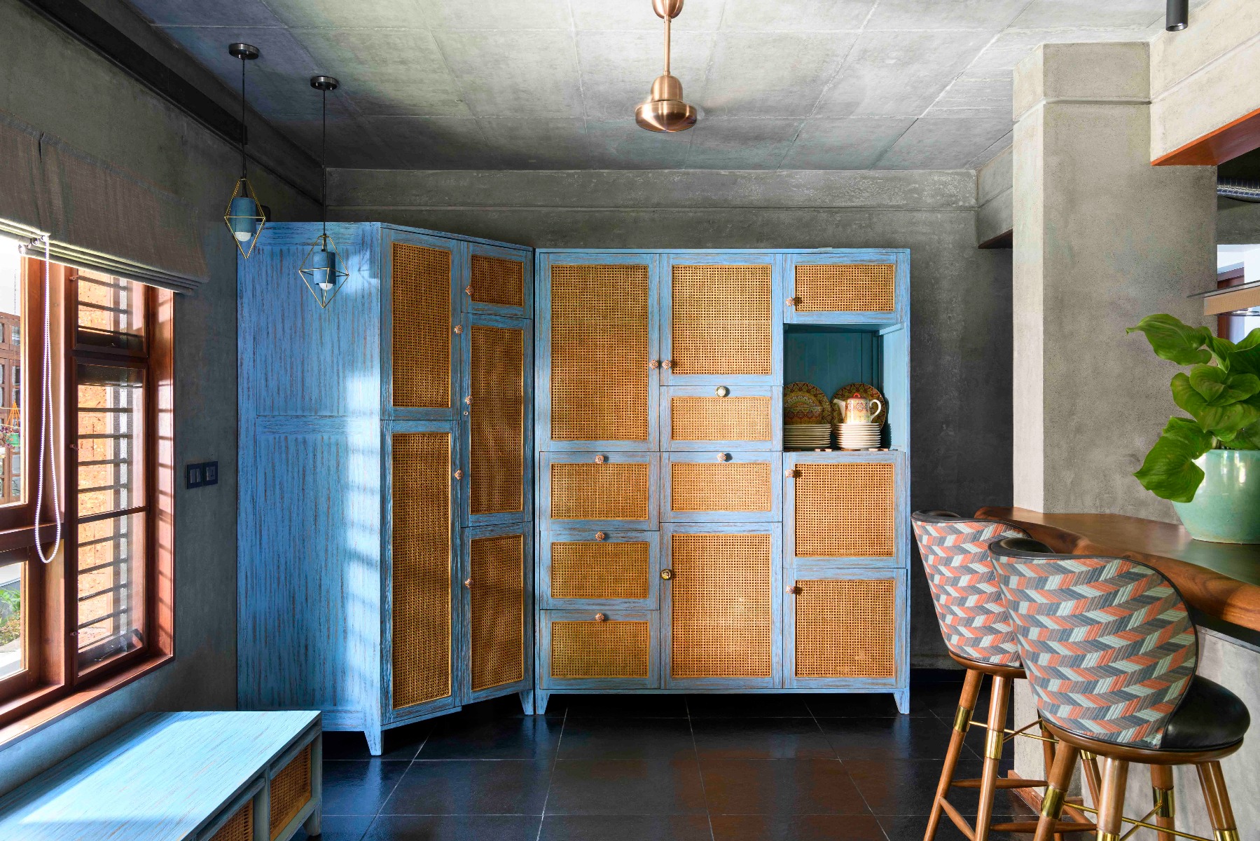 Mengundang Anda untuk mengistirahatkan mata dan merenungkan lemari dapur tinggi kami yang berdiri kokoh dan bangga di antara rekan-rekan kayunya. Bersifat pedesaan, kawat dicuci menjadi biru sempurna dan dibangun dari rotan alami lokal Indonesia yang menampilkan karya tebu yang rumit, menyerah pada getaran saat dengan lembut mengungkap kisah kesempurnaan, keindahan, kreativitas, dedikasi, dan keahlian yang menawan sebelum menemukan jalan pulang ke ceruk yang sudah ditakdirkan di Bandung.
